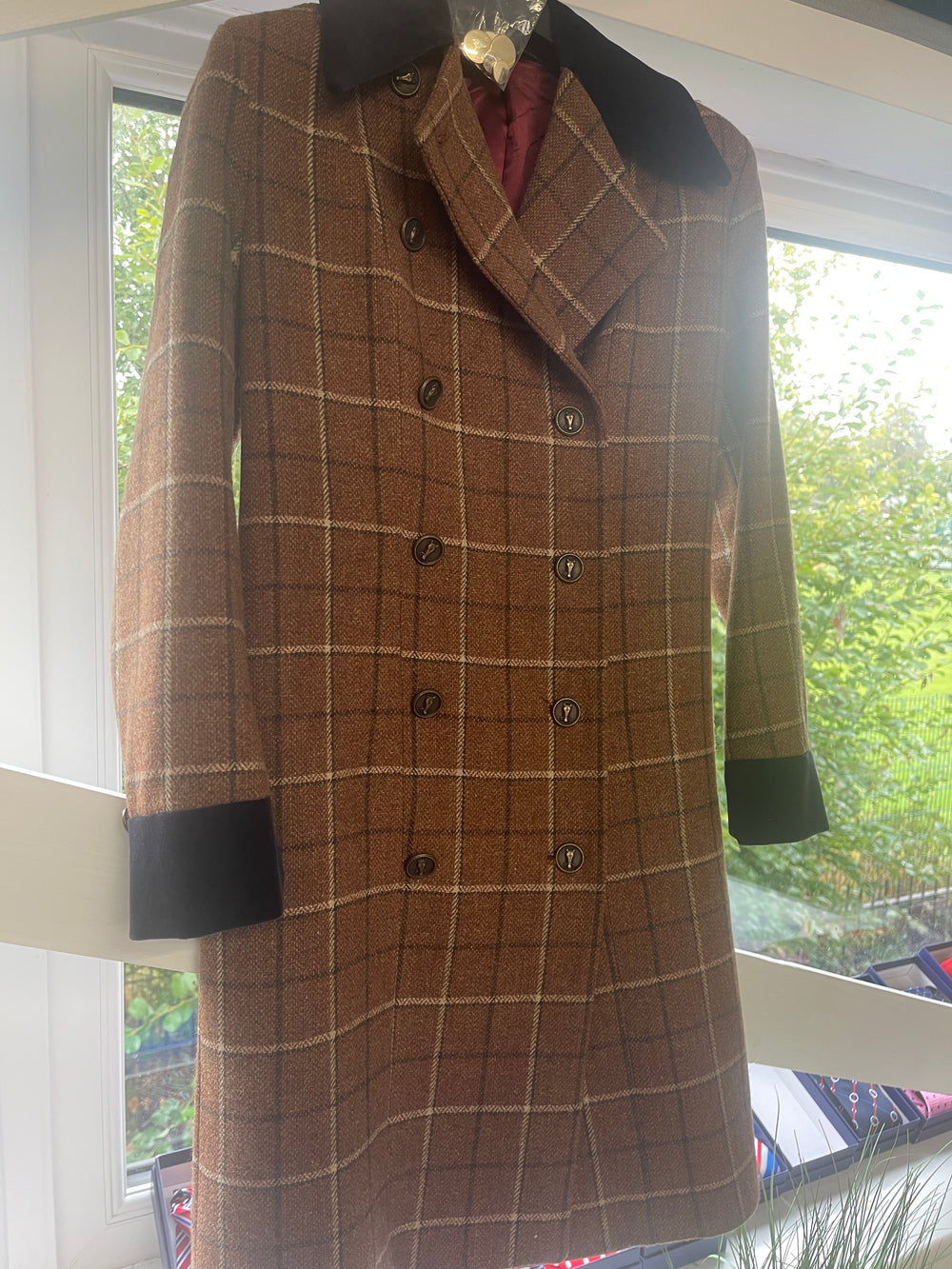 Each jacket reflects exceptional British craftsmanship, with a smooth back, refined lines, and meticulous finishing details. All styles listed on our website are ready for immediate dispatch, and we also offer a made-to-measure service with hundreds of tweeds, linings, velvets, and button options. To make each jacket truly personal, our bespoke service includes under-the-collar embroidery, a discreet and unique finishing touch.