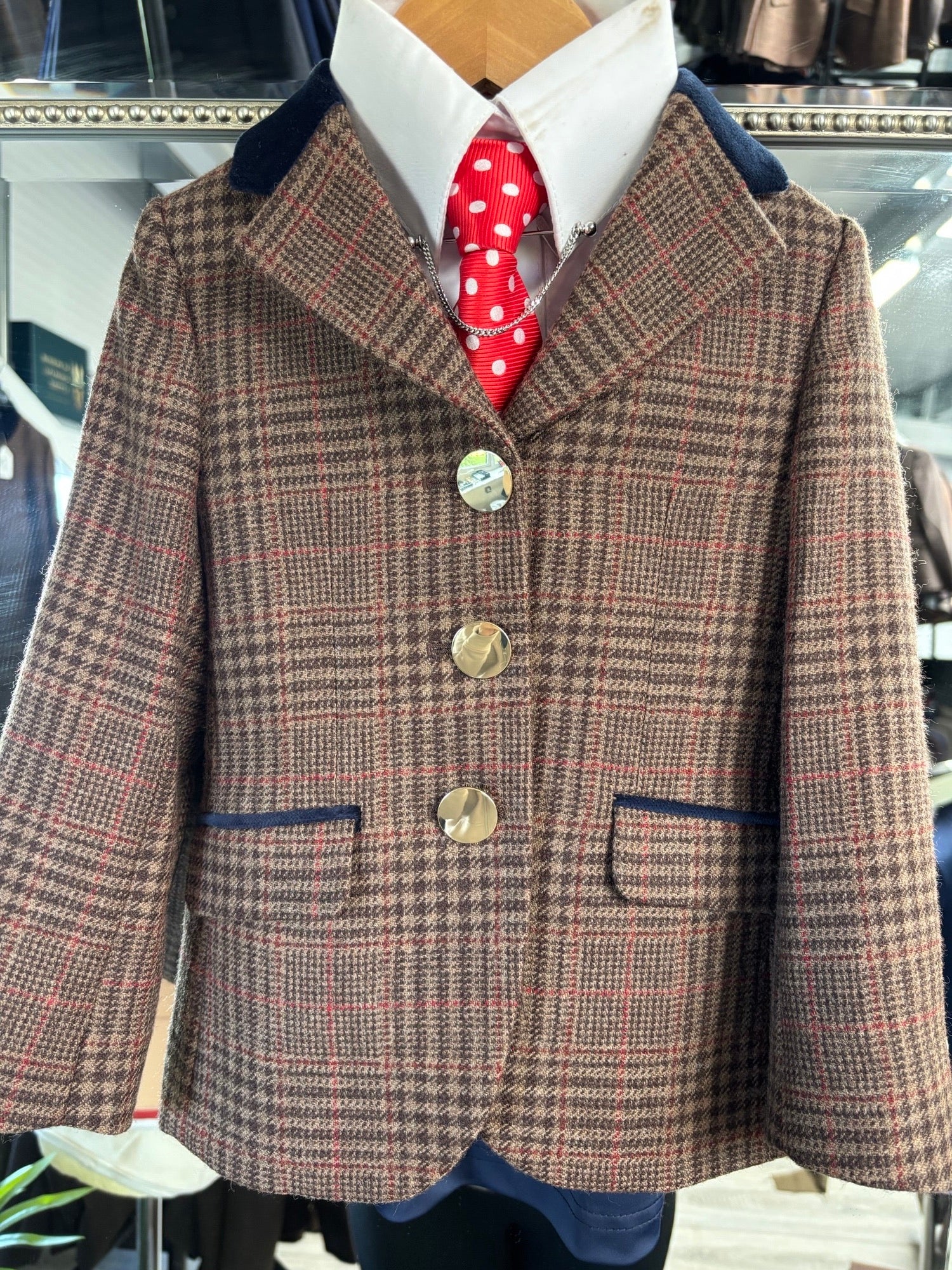 Beautiful Brown Tweed with Red Overcheck and Velvet Collar